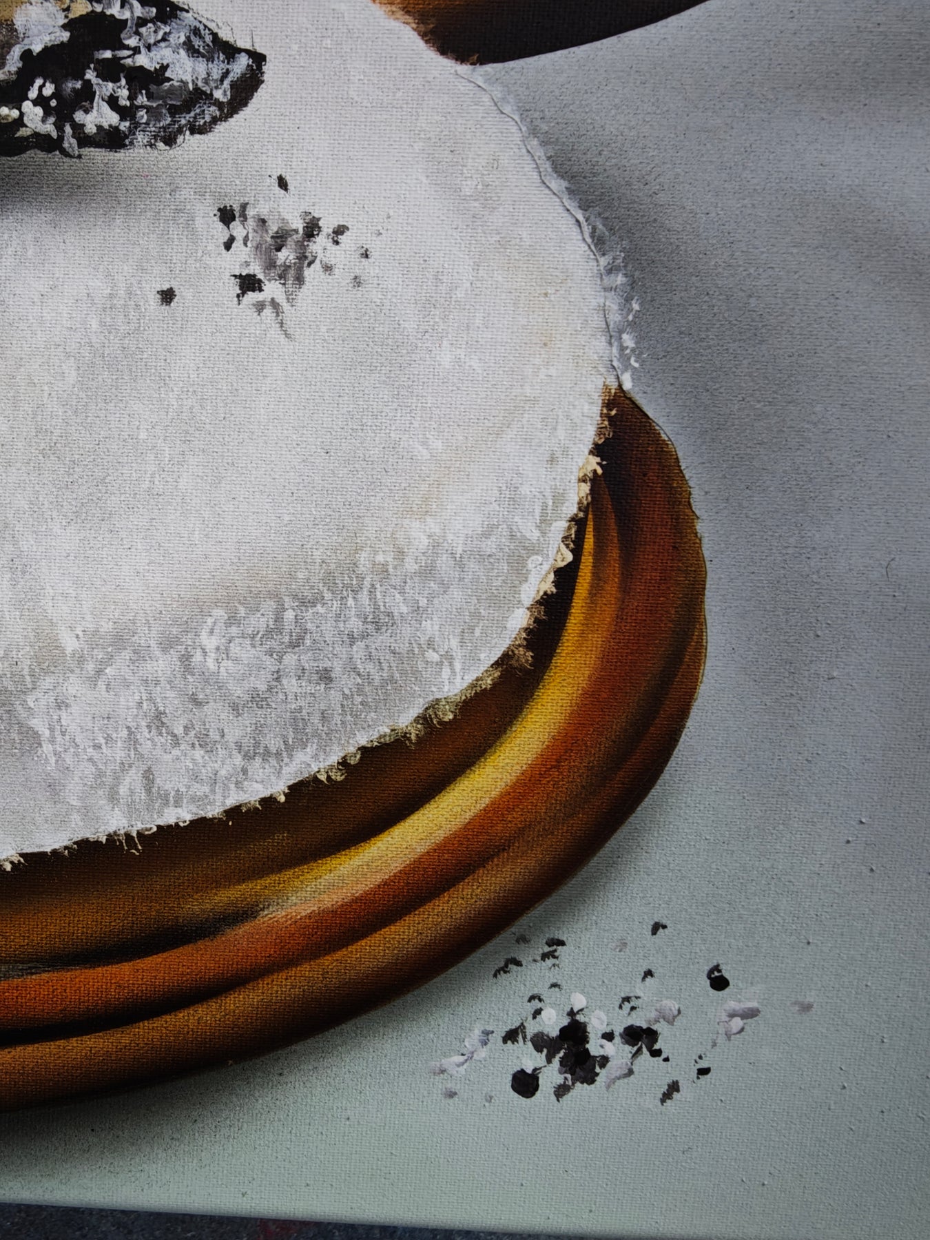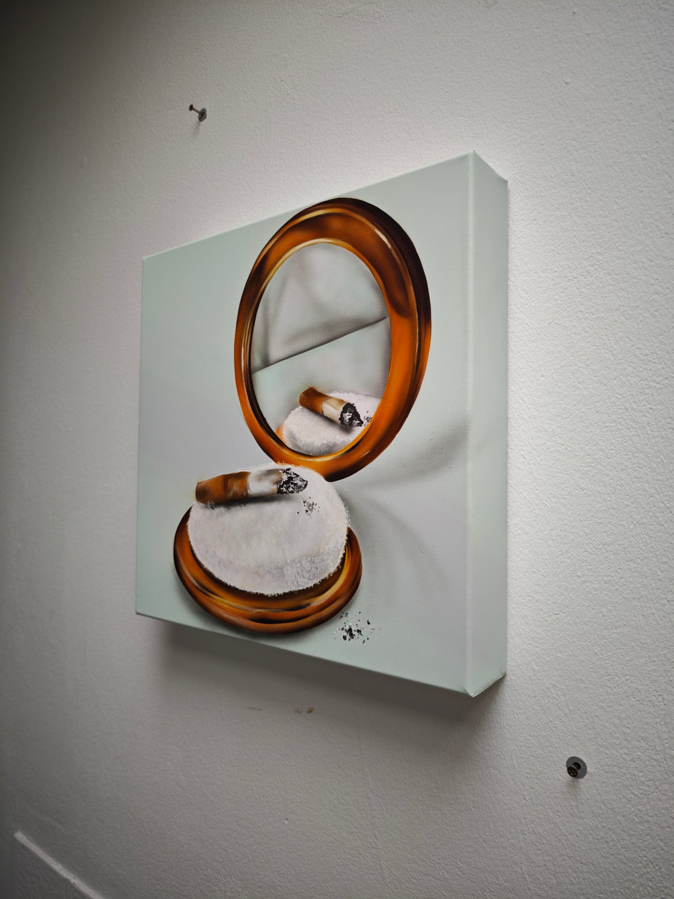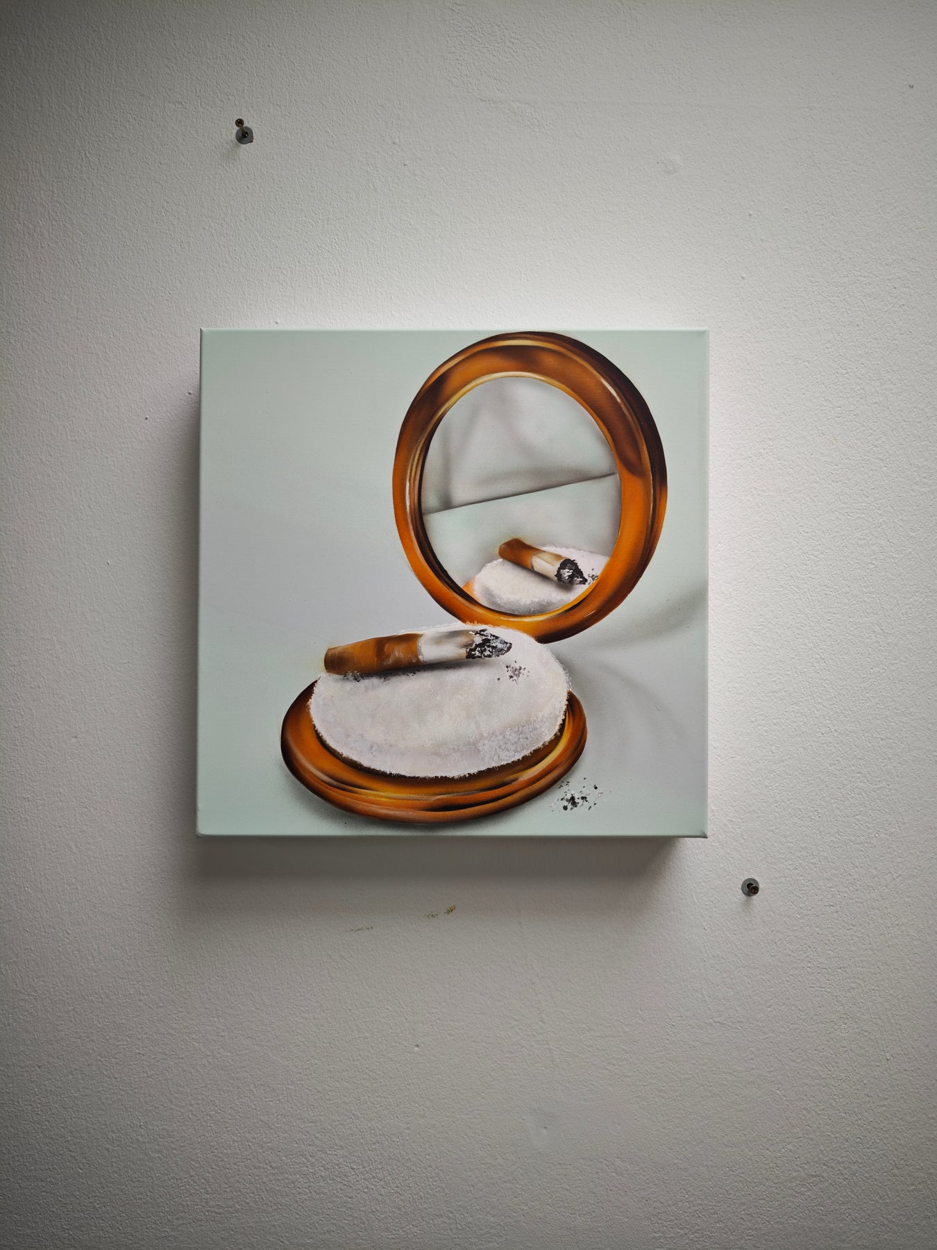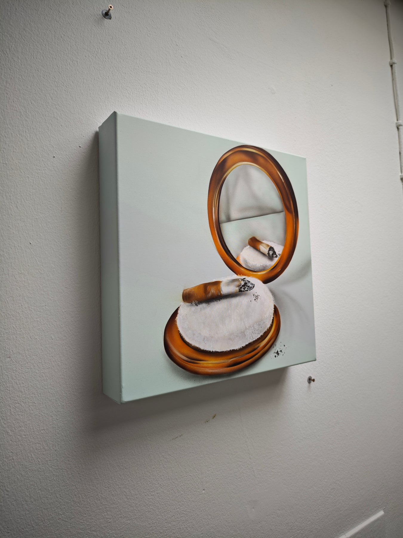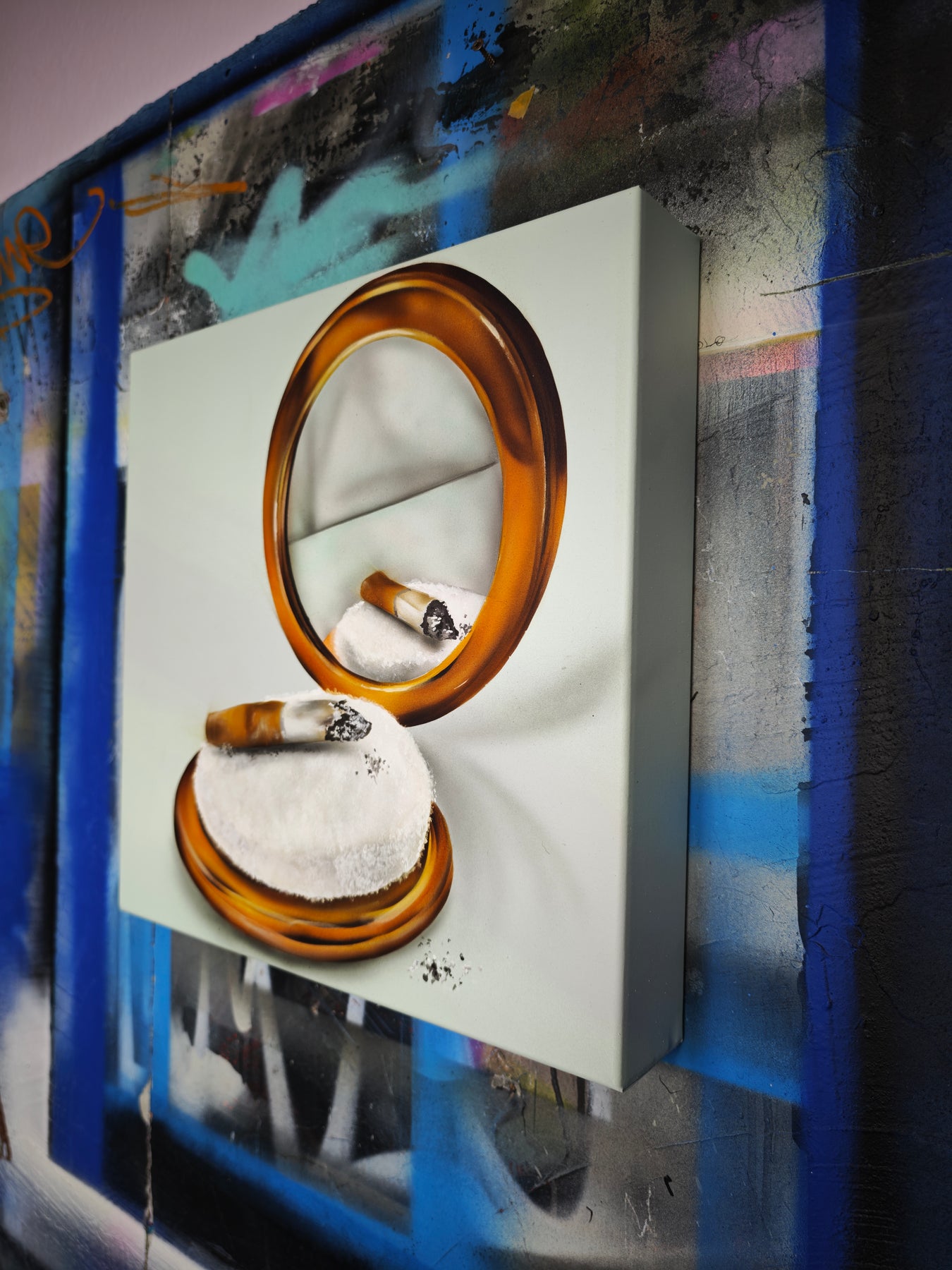Schönheit im RealbildMischtechnik auf Leinwand: Klassische Malerei, Streetart-Elemente und Copic-Airbrush verbinden sich zu einem rauen Kommentar auf Selbstinszenierung, Ekel, Eitelkeit – und den Versuch, das Chaos zu kontrollieren.