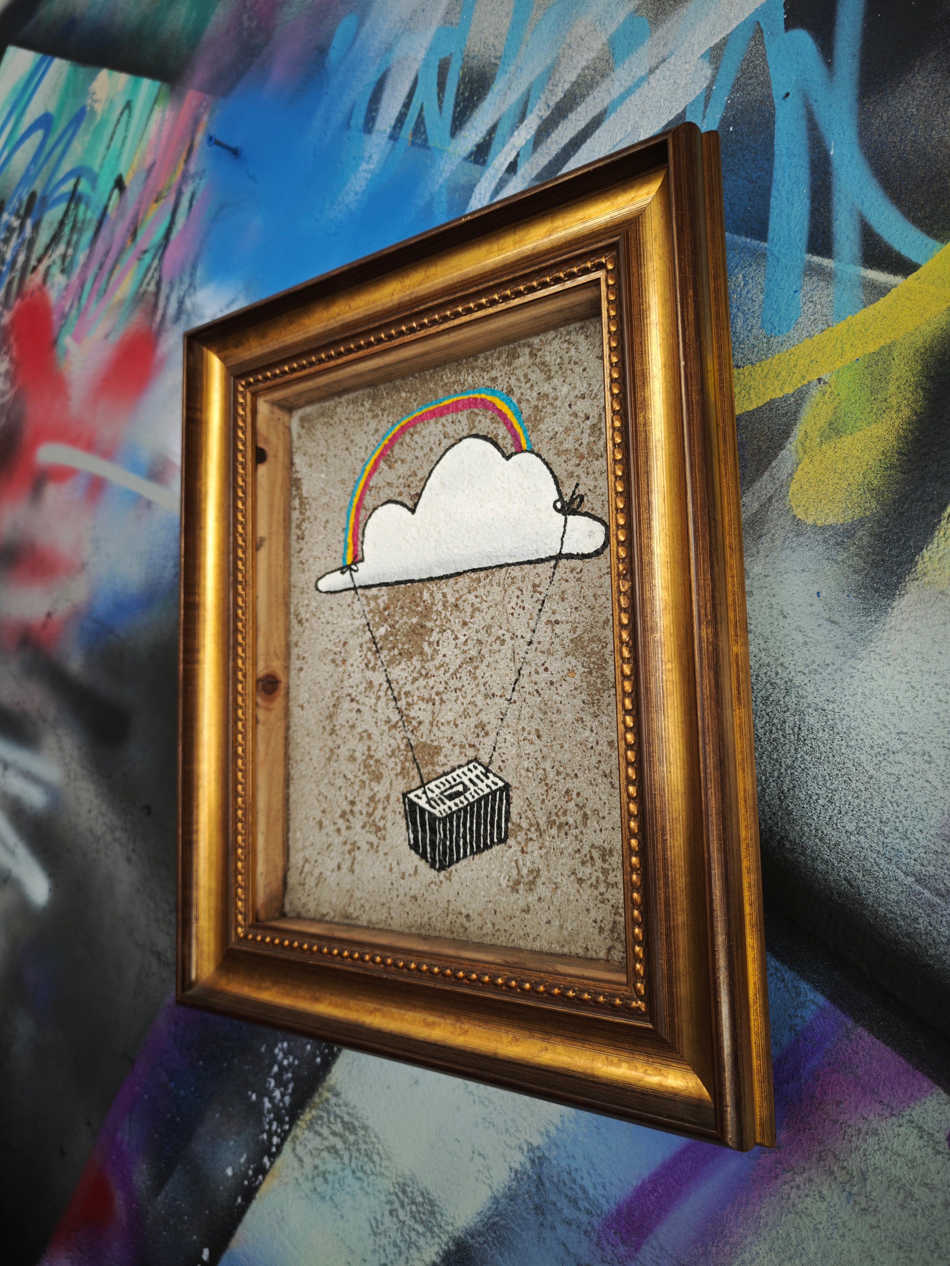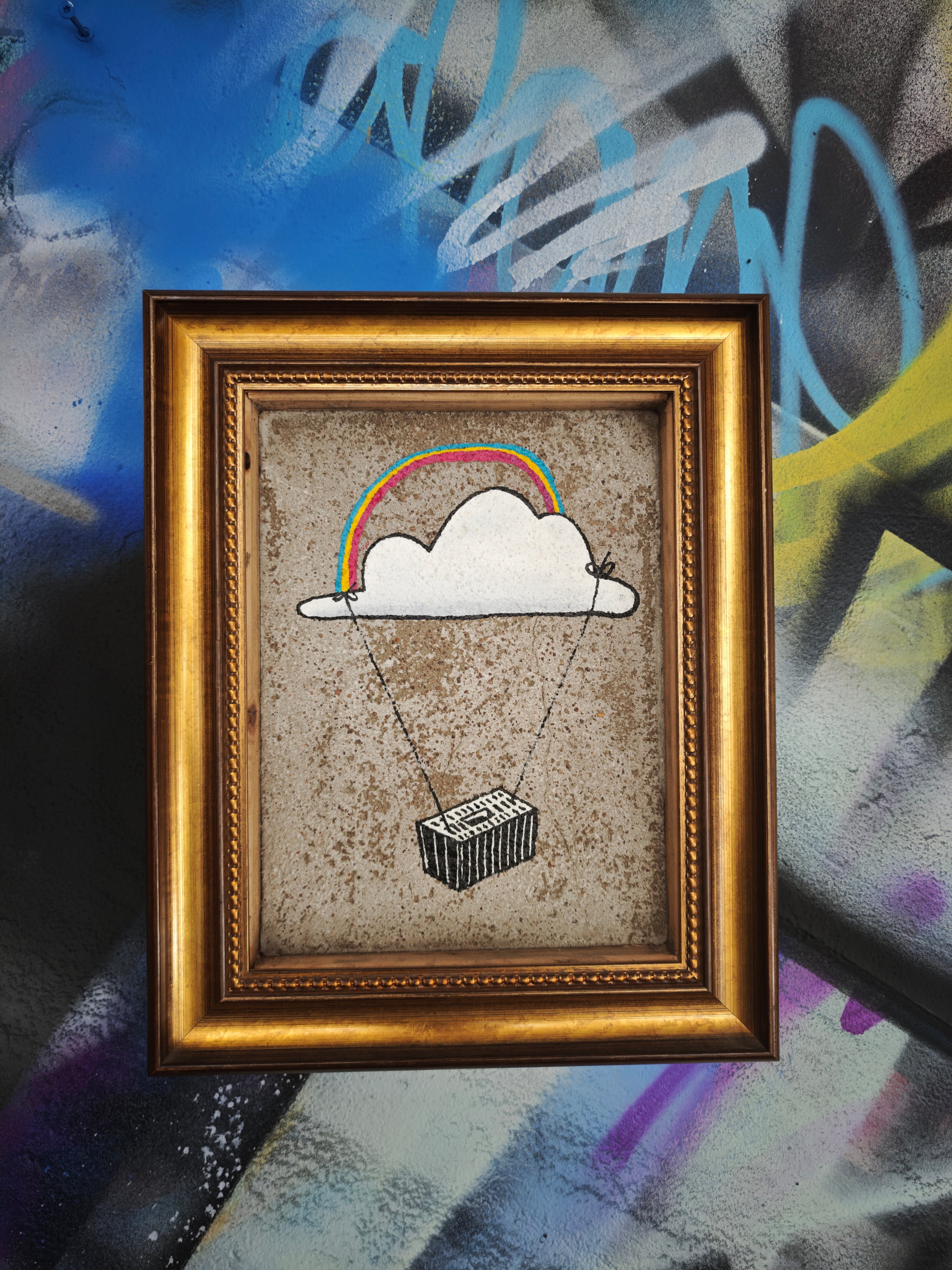 Technik: Spraypaint auf Betonplatte, gerahmt